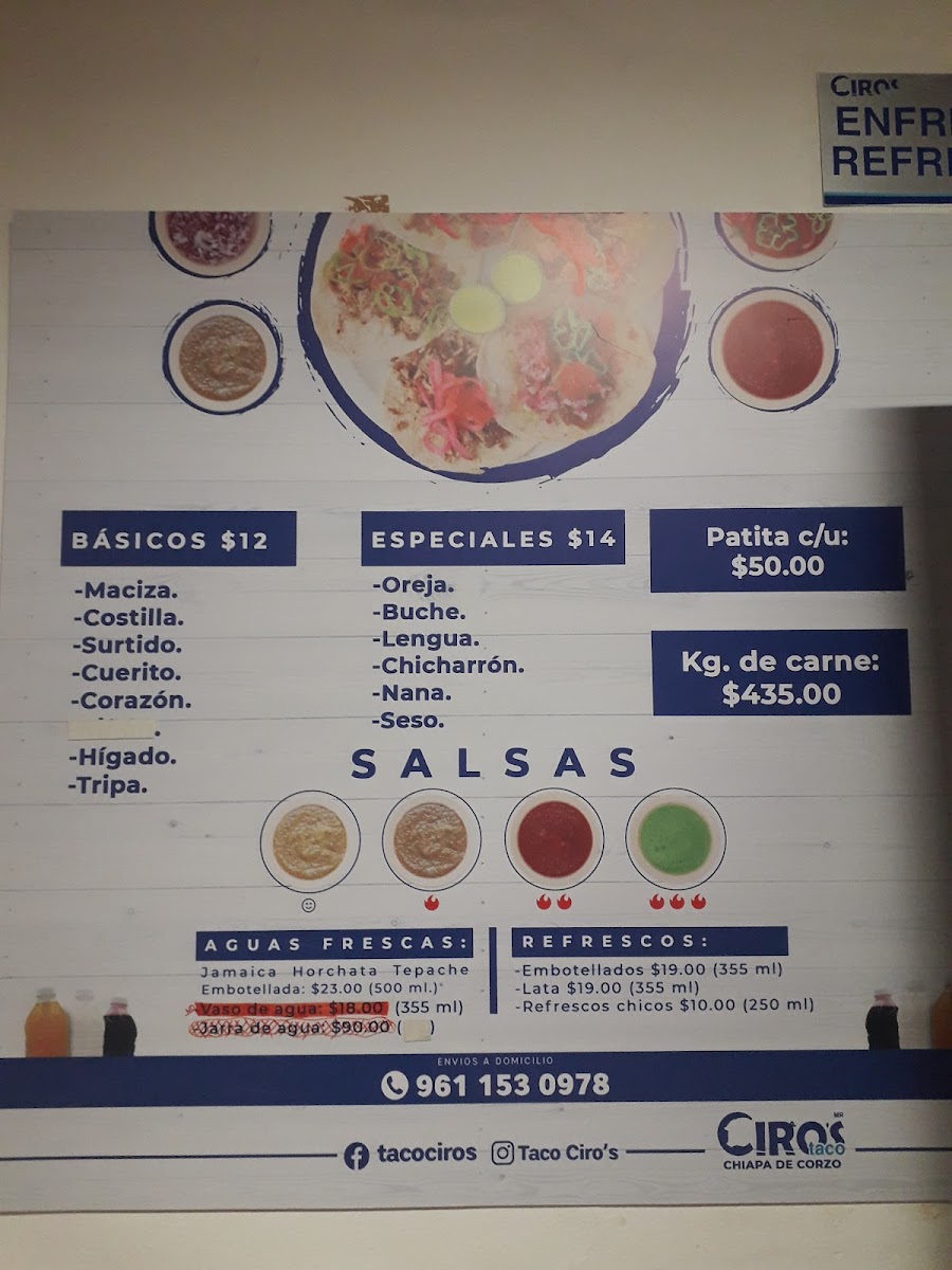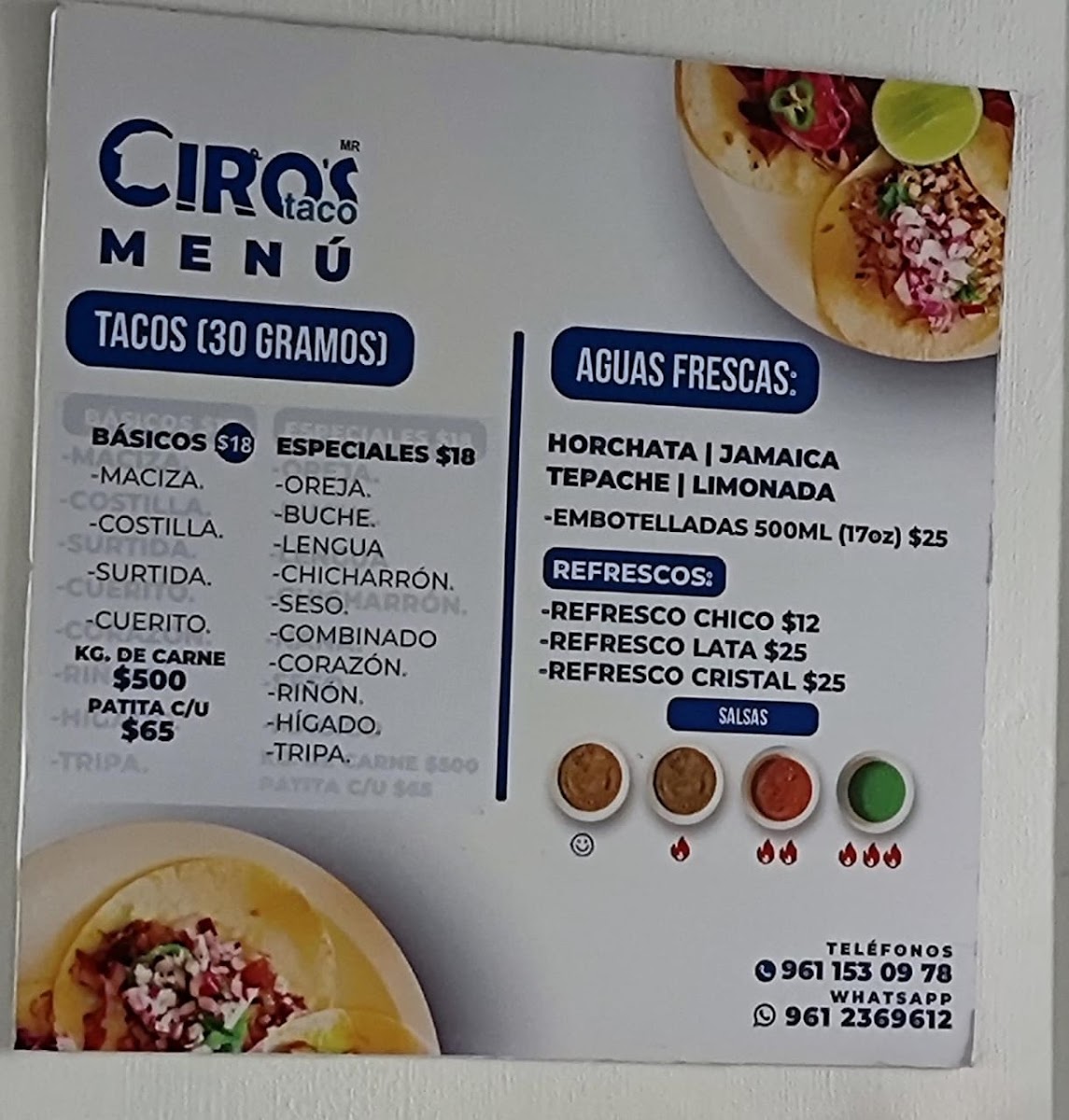 Welcome to Tacos Ciro's in Chiapa de Corzo, where authentic Mexican flavors come to life. Nestled at Av. Coronel Salvador Urbina 16, this local gem has garnered praise for its delicious menu and inviting atmosphere. The highlight of the offerings is undoubtedly the carnitas tacos, celebrated for their rich flavor and tender texture—truly an unmissable experience.